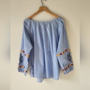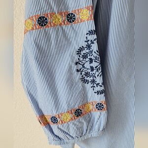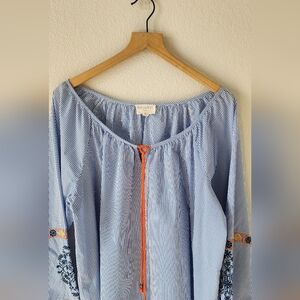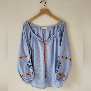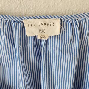 Blu Pepper Plus Casual Striped Embroidered Blouse 3XL