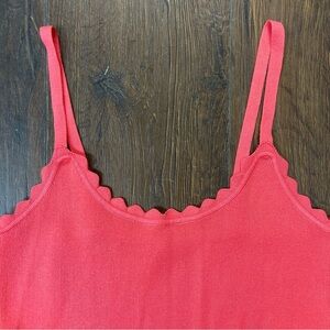 Add a pop of color to your wardrobe with this vibrant coral tank top. Featuring a stylish scalloped edge, it's perfect for layering or wearing on its own. Ideal for casual outings or a day at the beach.