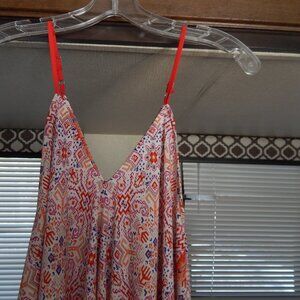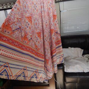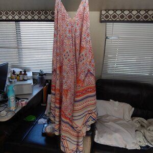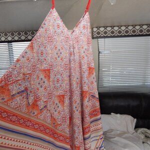 Handkerchief Boho dress in the color of orange. It is size small and has spaghetti straps. Chest is 19ins, it is 37ins long and 23ins in the middle.