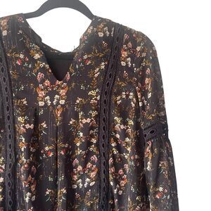 Blu Pepper Small Black Floral Metallic Cottage Peasant High Low Tunic Blouse