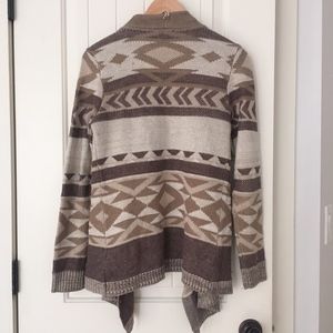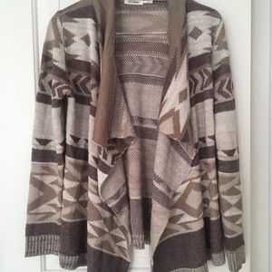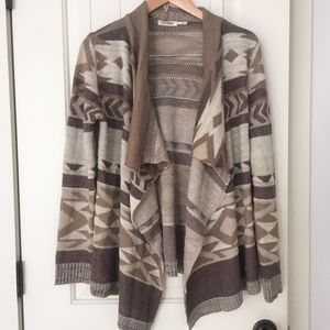 Southwestern print in earth tones / brown & tan open front sweater by Blu Pepper