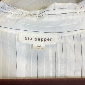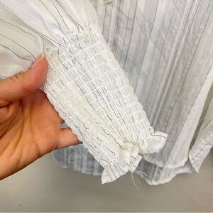 Blu Pepper Striped Smocked Cuffs Relaxed Fit Button Down Shirt White Size M