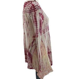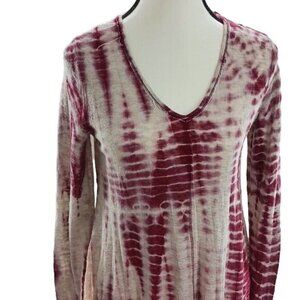 Blu Pepper Top Burgundy Tie Dye Bohemian V neck Long Sleeve Lace Size Small