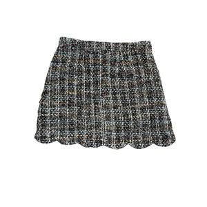 Blu Pepper Tweed Button Front Scalloped High Waisted Mini Skirt Size Med EUC