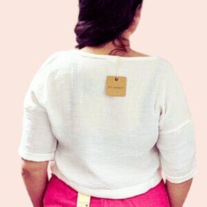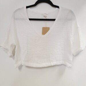 Cute boxy white short sleeve crop top by Blu Pepper Brand. NWT available in S-L. It is see through, wear with a bralette, cami, or over a swim suit or jumpsuit