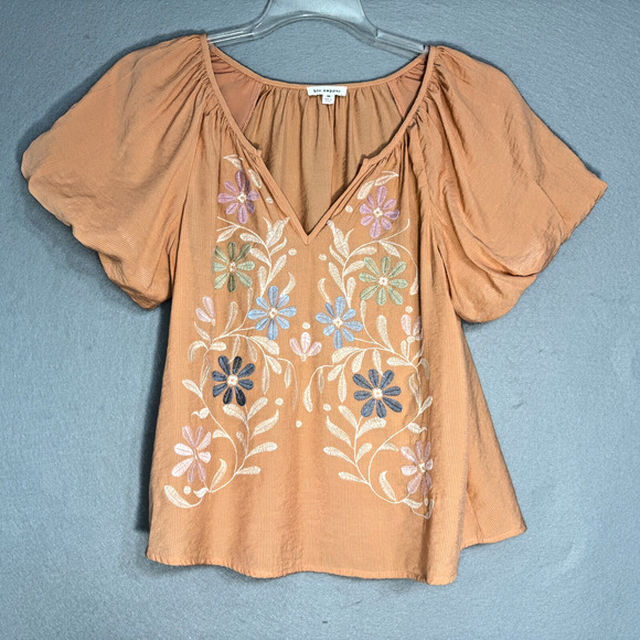 Blu Pepper Womens Embroidered Peasant Size M Top Puff Sleeve Bohemian Cottage