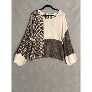Blu Pepper Women's Medium Patchwork Sweater in Brown Multi NEW