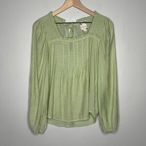 Blu Pepper Womens Peasant Top Medium Light Green Yellow Polka Dots Dainty Brunch