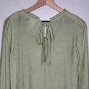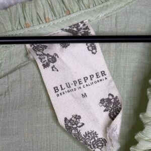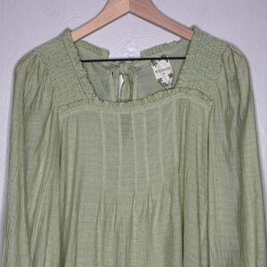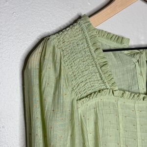 Blu Pepper Womens Peasant Top Medium Light Green Yellow Polka Dots Dainty Brunch