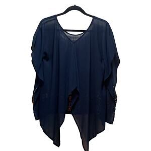 Blu Pepper Women’s Poncho Style Embroidered Top with Open Back Size S Oversized