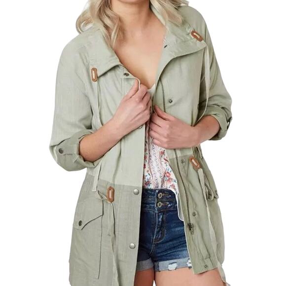Blu Pepper Women's Sage Color Block Casual Lined Linen Blend Jacket Size Large
