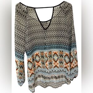 Blu Pepper Women's Sheer Blouse Long Sleeve Boho Style Multicolored Size M