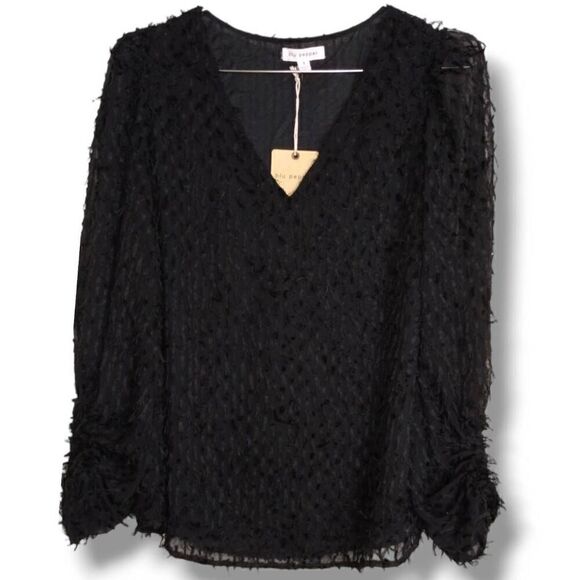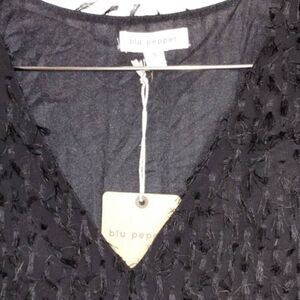 Blu Pepper Womens Sheer Top Size Small Black Vneck 3/4 Sleeves Holiday Slouchy