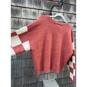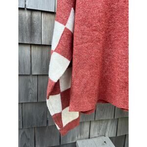 Blu Pepper, Women’s Sweater, Orange & White with Checkered Sleeves, NWOT, XL
