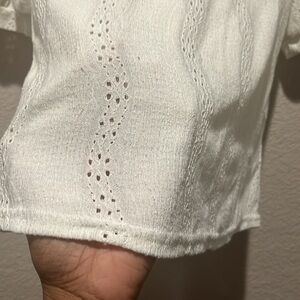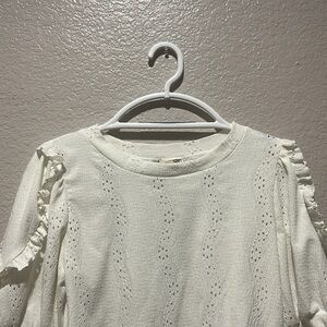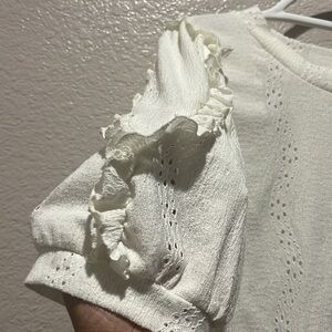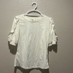 Blu Pepper Women’s Top Puff Ruffle Short Sleeve Round Neck Cream Size Medium
