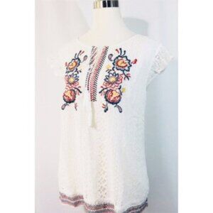 Blu Pepper Womens White Embroidered Cap Sleeve Tank Top Womens Plus Sz 3X NWT