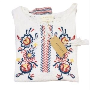 Colors: White, Reds, Blues, Yellows ( Embroidered Floral)