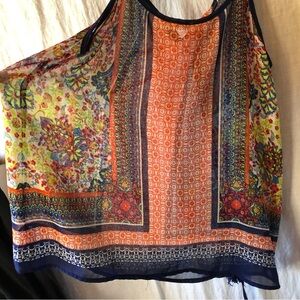 Blu Pepper colorful printed tanks top flowy and vibrant w tassels semi sheer M