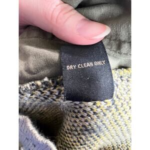 wonderful casual shacket with great green khaki front and sides, with drawstring waist and aztec print sweater back. 4 big patch pockets on the front.