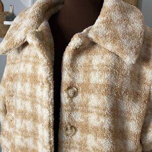 Blu Pepper tan and cream plaid shacket jacket coat women’s size medium cozy fall