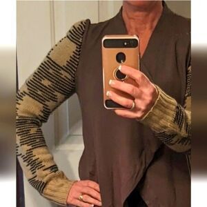 Blu Pepper taupe black cardigan sweater - great used condition - Large
