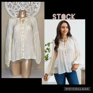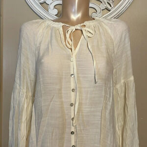 Blu Pepper women’s blouse medium shirt bubble sleeve boho cream long sleeve