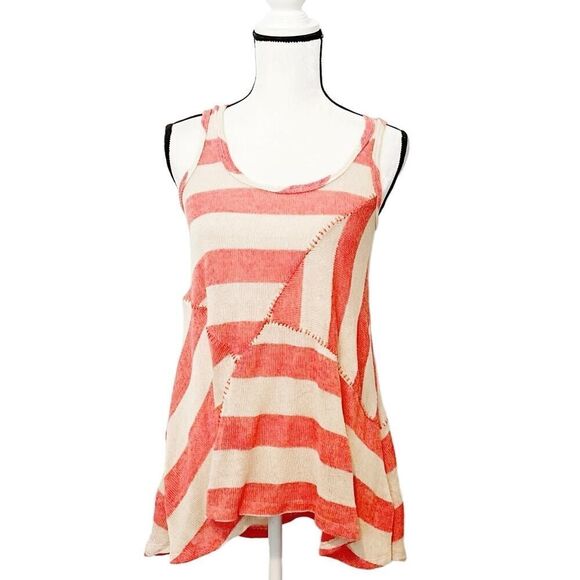Blu Pepper Orange & Beige Sleeveless Scoop Neck Striped Tunic Sweater Size Small