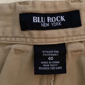 Mens shorts by Blu Rock New York. Size 40” & made of 97% cotton & 3 % spandex. 2 front pockets & 1 watch. 2 back pockets. Good condition. # 3255