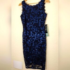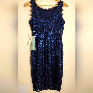 Blu Sage Blue Sequined Sleeveless Midi Dress NWT