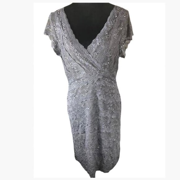 Blu Sage Medium Gray Lace Cocktail Evening Dress With Sequins Size 12 EUC