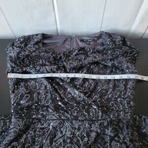 Blu Sage Slate Black Formal Sequins Dress, Sz 4, V-Neck, Lace ¾ Sleeve, Zip up Back, Black Lace Sequins, Party Cocktail Evening Wedding Mother-of-the-Bride/Groom, EUC