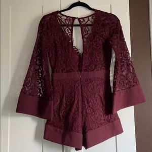Blu Spero Maroon Lace Romper