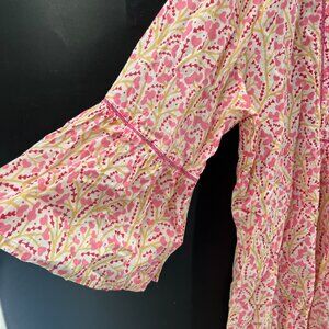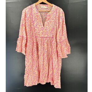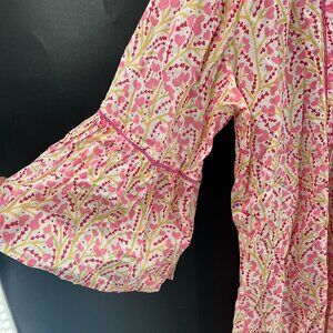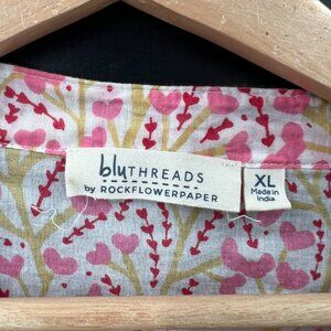 Blu Threads rockflower paper tunic top boho hippy floral pink popover hippie XL