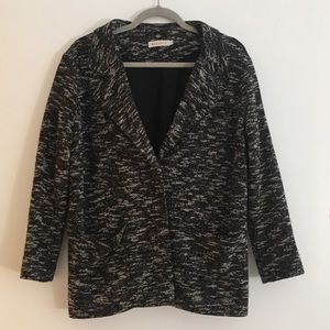 This is a blazer that is a bit on the thicker size with a black and white embroidered print. Blu Velt is designed and made in Spain. This is a large but it fits small.