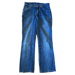 Blu Women’s 10 Blue Mid Rise Bootcut Distressed Premium Quality Denim