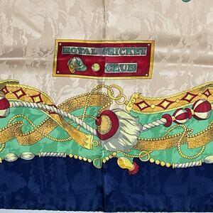 Blu di Balestra ROYAL CRICKET CLUB Print Silk Scarf 33” Square Made in Italy EUC