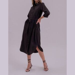 Blu Pepper Mine Black Dress Button Front Matching Belt Midi NWT Sz Medium