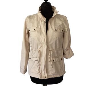 Blu Pepper Tan Utility Zip Jacket Crochet Back Women’s Small