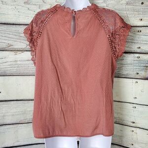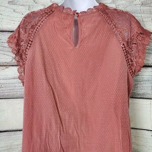 Blu Pepper Women’s Lace Sleeve Dot Textured Top Size L Mauve