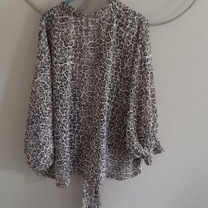 This top is amazing...throw on over tank and skinny jeans or fitted tank dress. Like new... Size s but oversized on trend tie front style.
