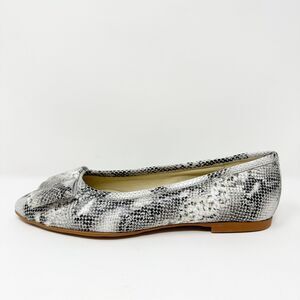 Blublonc Womens Snakeskin Print Leather Flats 35 Made In Spain Bow Detail US 5