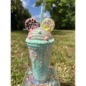 Blue 3D Cookie Ice Cream Sprinkle Cup 16oz Cold Beverage Straw & Lid Tumbler….