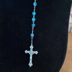 Blue AB Aurora Borealis beaded Rosary. Stamped Italy. Beautiful color and beading.