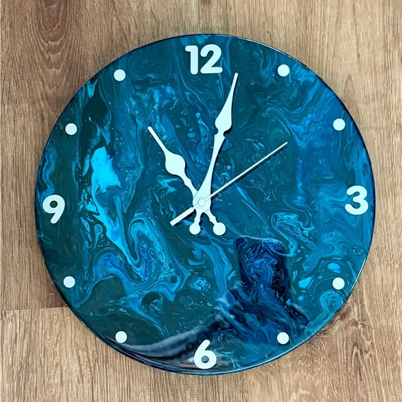 Enhance your home decor with this stunning blue abstract wall clock. Its unique design adds a modern touch to any room.