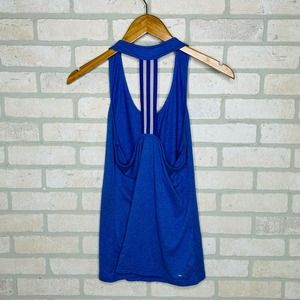 Color is not as bright blue as pictures appear! Workout tank top with fun racer back detail.