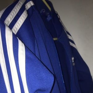 Blue adidas superstar jacket. Very good condition. Never worn but no tag. Kid's large but fits woman x-small.