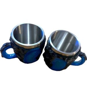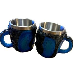 Blue Agate Inspired Stone Mugs with Stainless Steel Inserts (2)