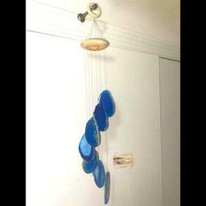 This gorgeous item is made with vibrant and colorful agate slices, draping gracefully from a wooden ring.