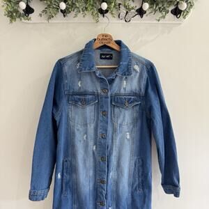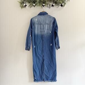 Blue Age Distressed Denim Button Down Jacket Dress Small Y15