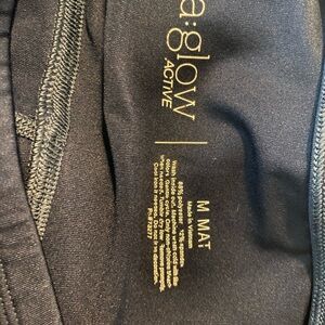 A-glow Active Maternity 3/4 length yoga pant. Full belly panel, 88% polyester, 12% spandex